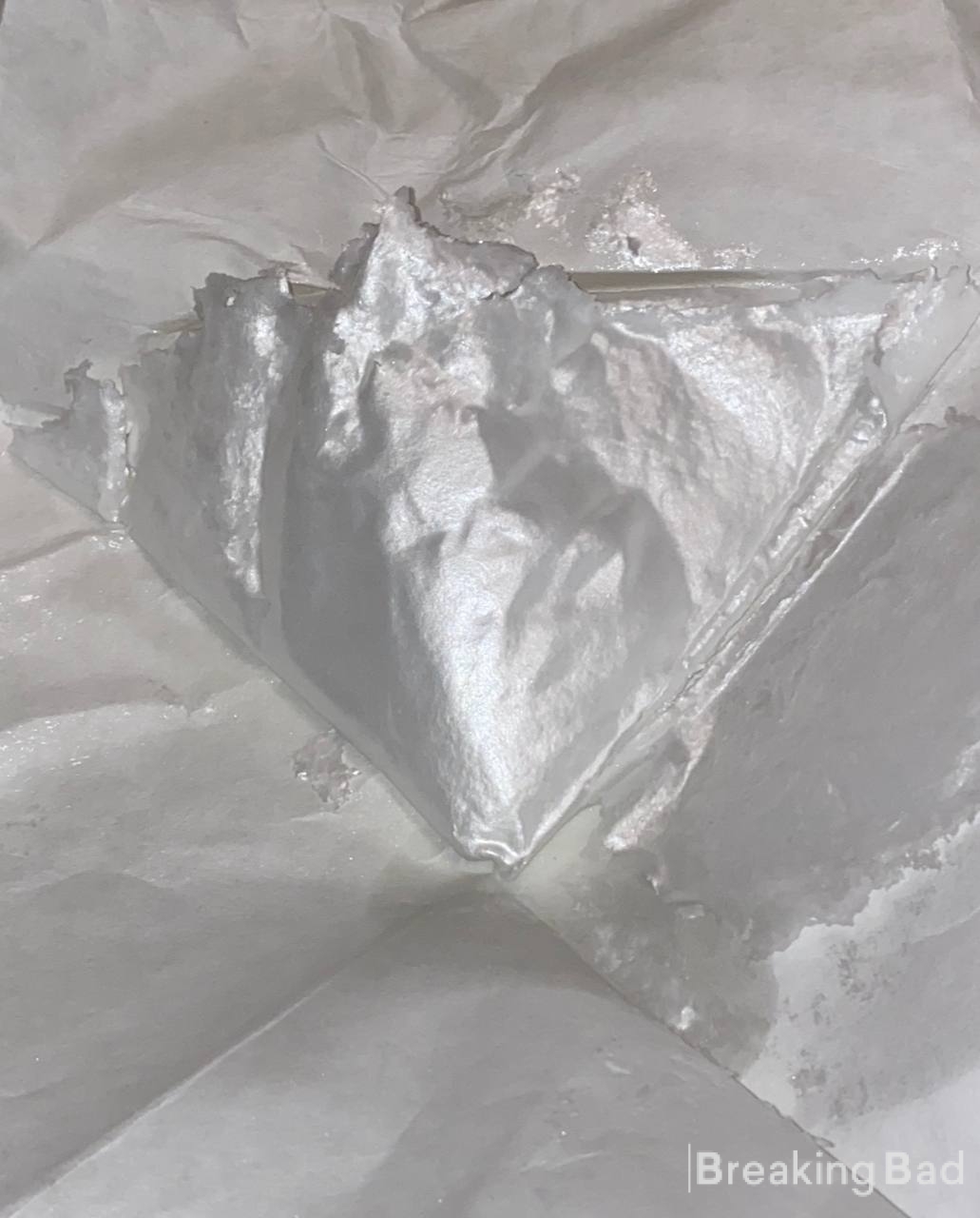 Ich habe es vor Ort gekauft und in destilliertem Aceton gewaschen. Es hat einen schönen glatten Glanz. Nicht funkelnde Flecken, sondern wie weiß getünchtes Aluminium, wahrscheinlich ist noch etwas Borsäure drin, aber in erster Linie ist der Glanz richtig für Qualitätsware. In reiner Form ist Kokain ein Kristall, und man kann sehen, dass einiges davon tranluszent ist. Es ist trocken